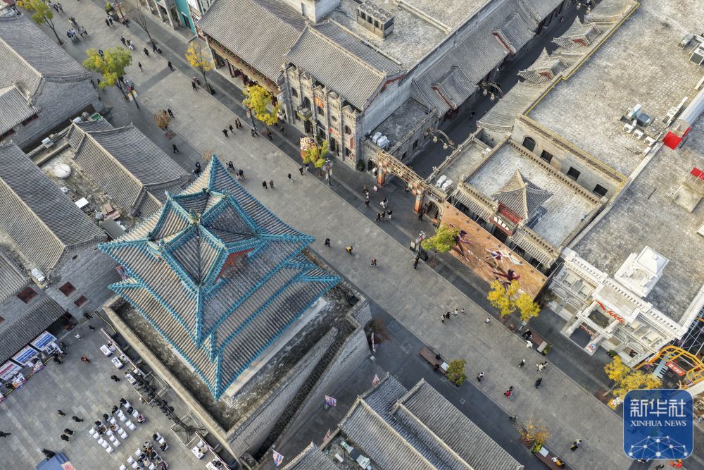 "新華社發(fā)(劉亮亮 攝)↑ 山西省呂梁市臨縣磧口古鎮(zhèn)一角(10月29日攝,無(wú)人機(jī)照片)。" 磧口新生 古鎮(zhèn)新“味”